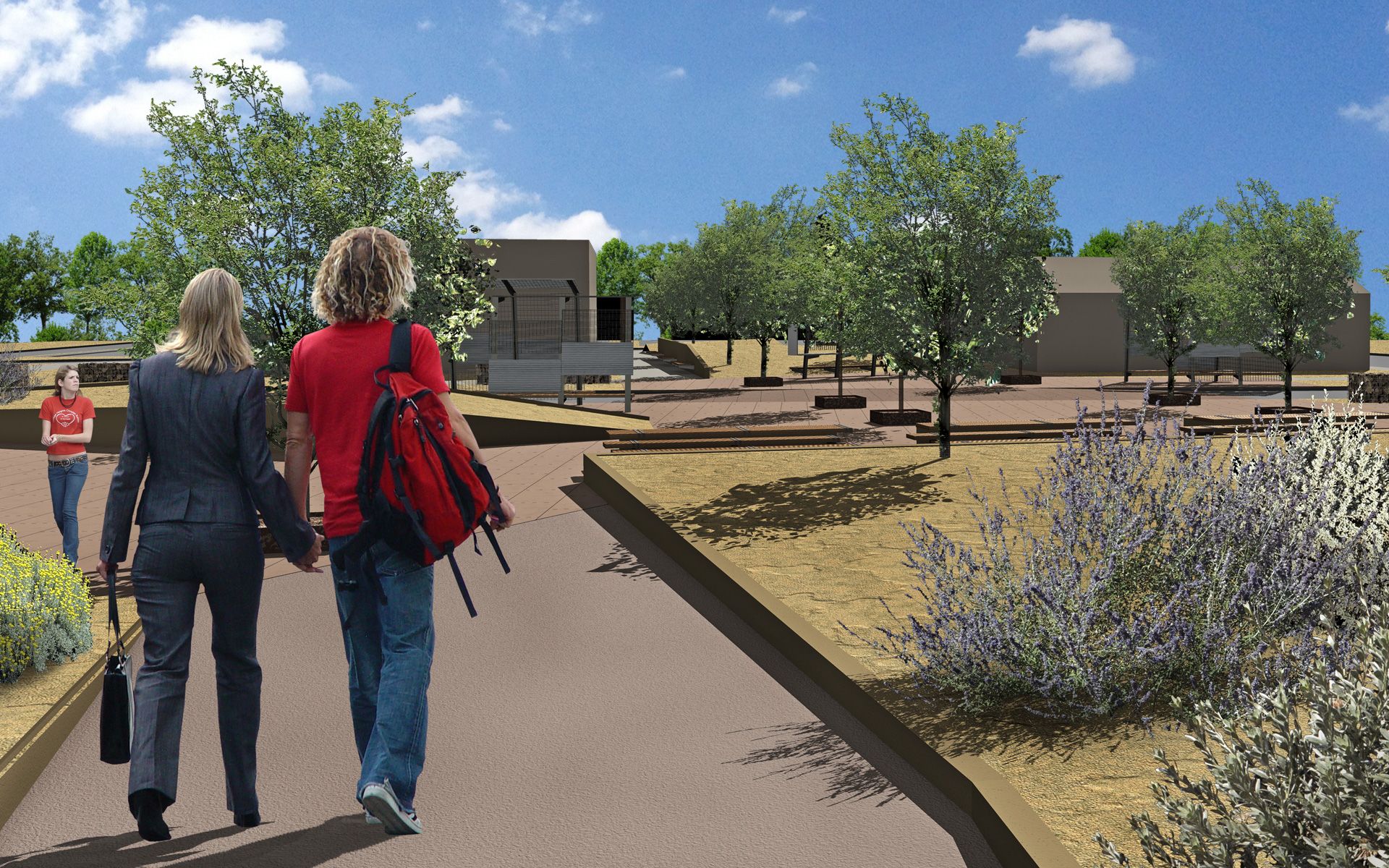 The park operates across multiple scales: it supports programmed events and informal gathering, individual contemplation and community interaction. Plantings are regionally adapted and ecologically responsive, reinforcing both sustainability and visual legibility. Gabion walls, shaded seating, and simple furnishings express a material tectonic drawn from soil architecture and rural vernacular construction.