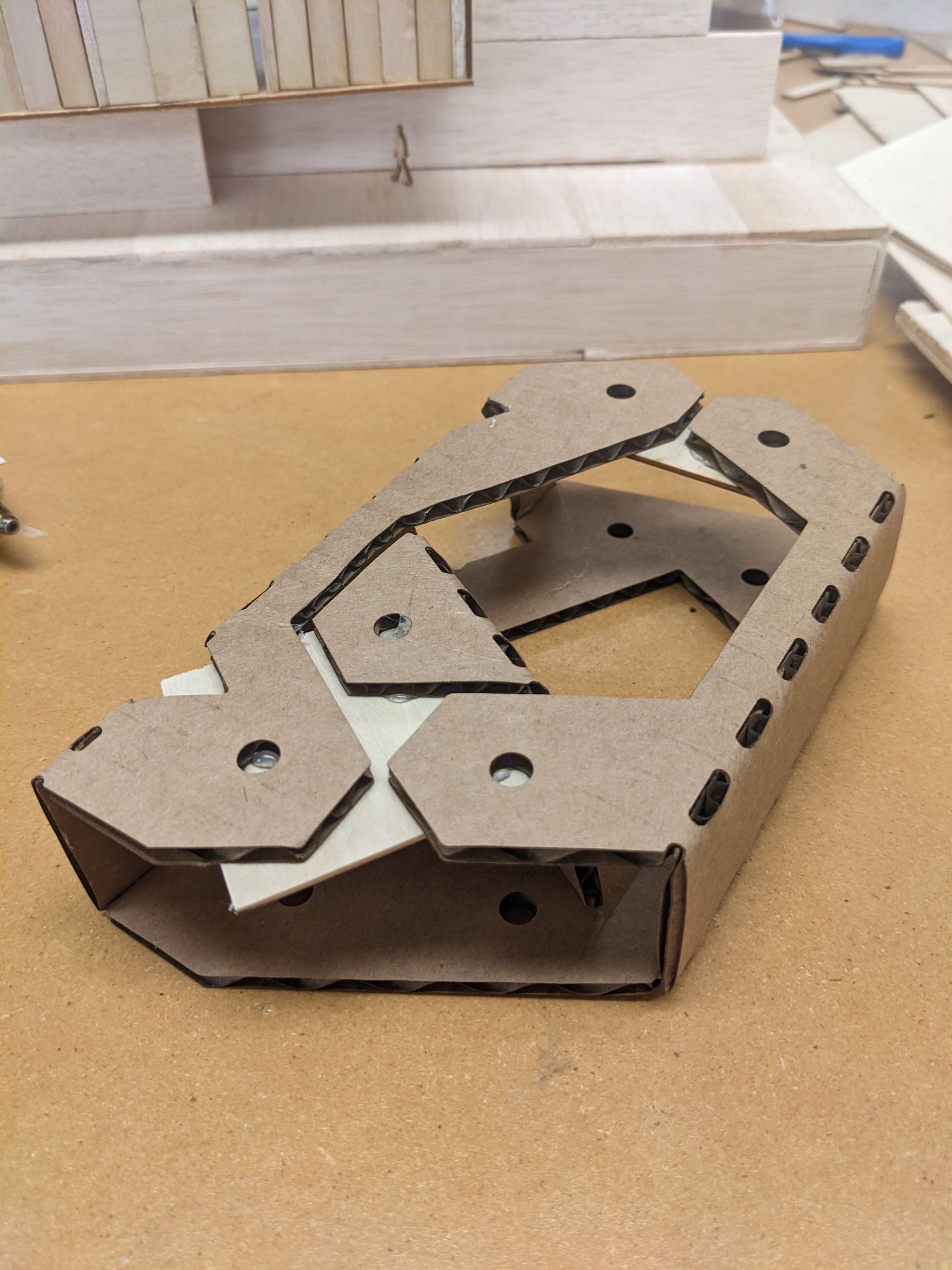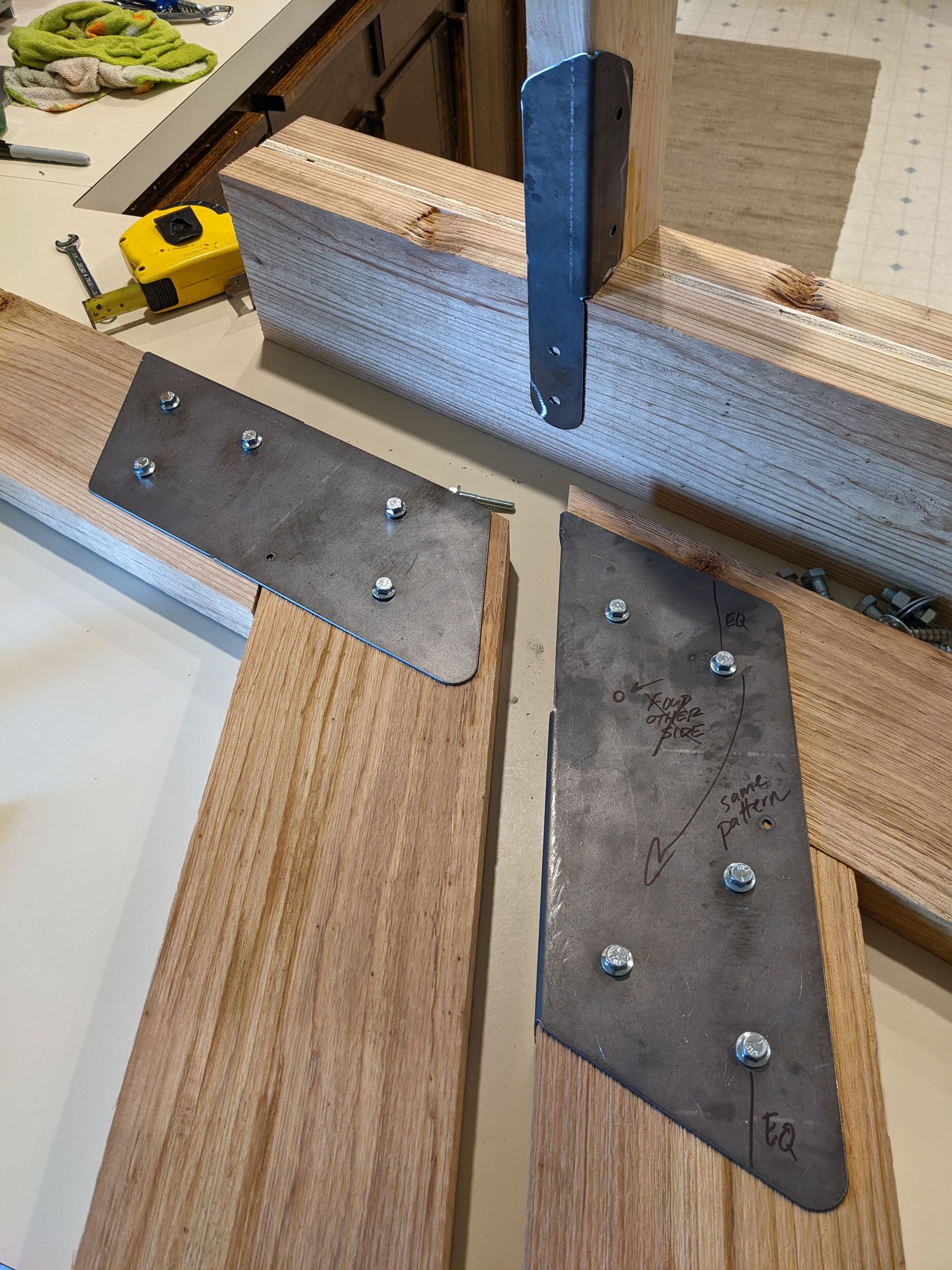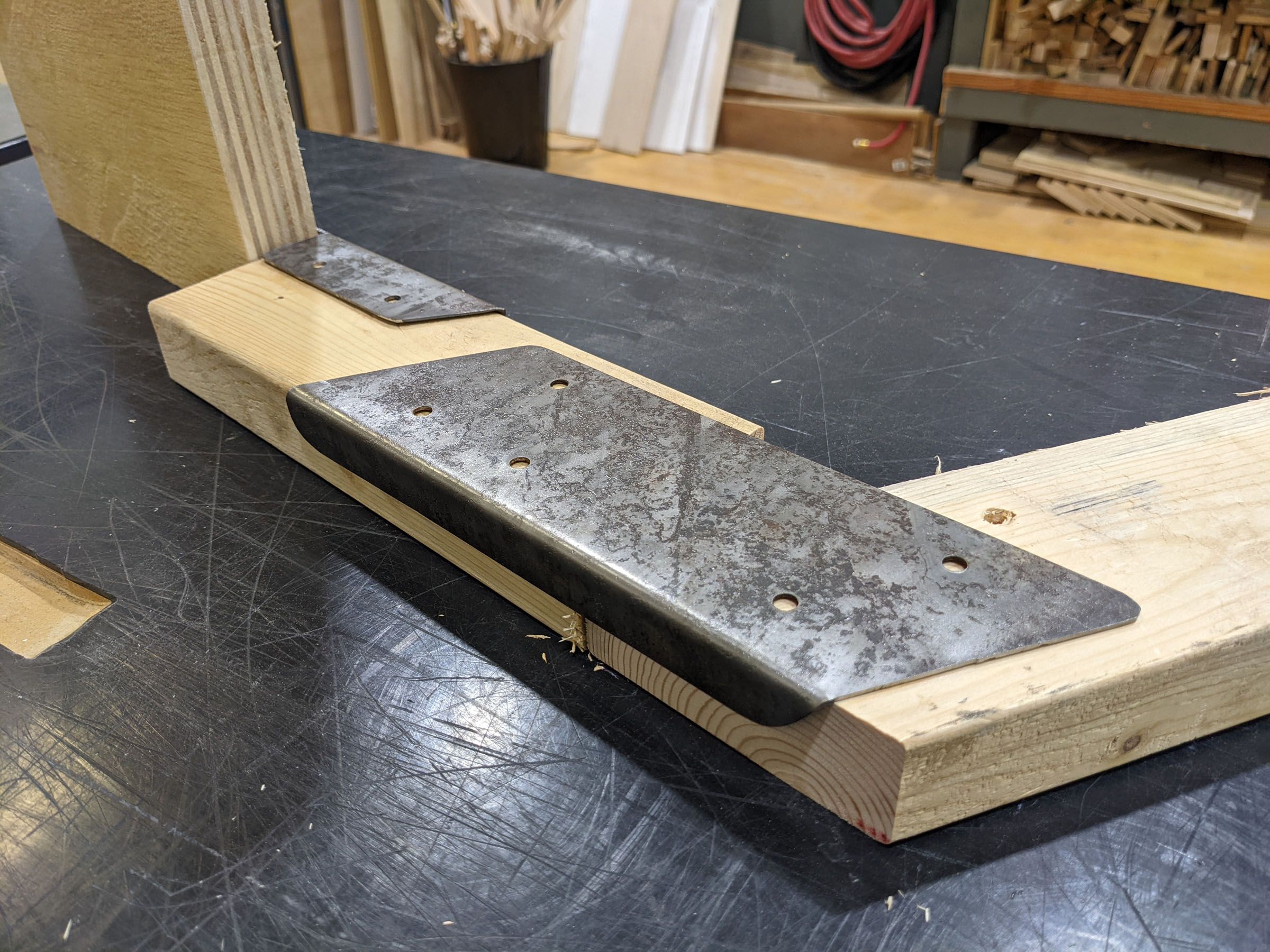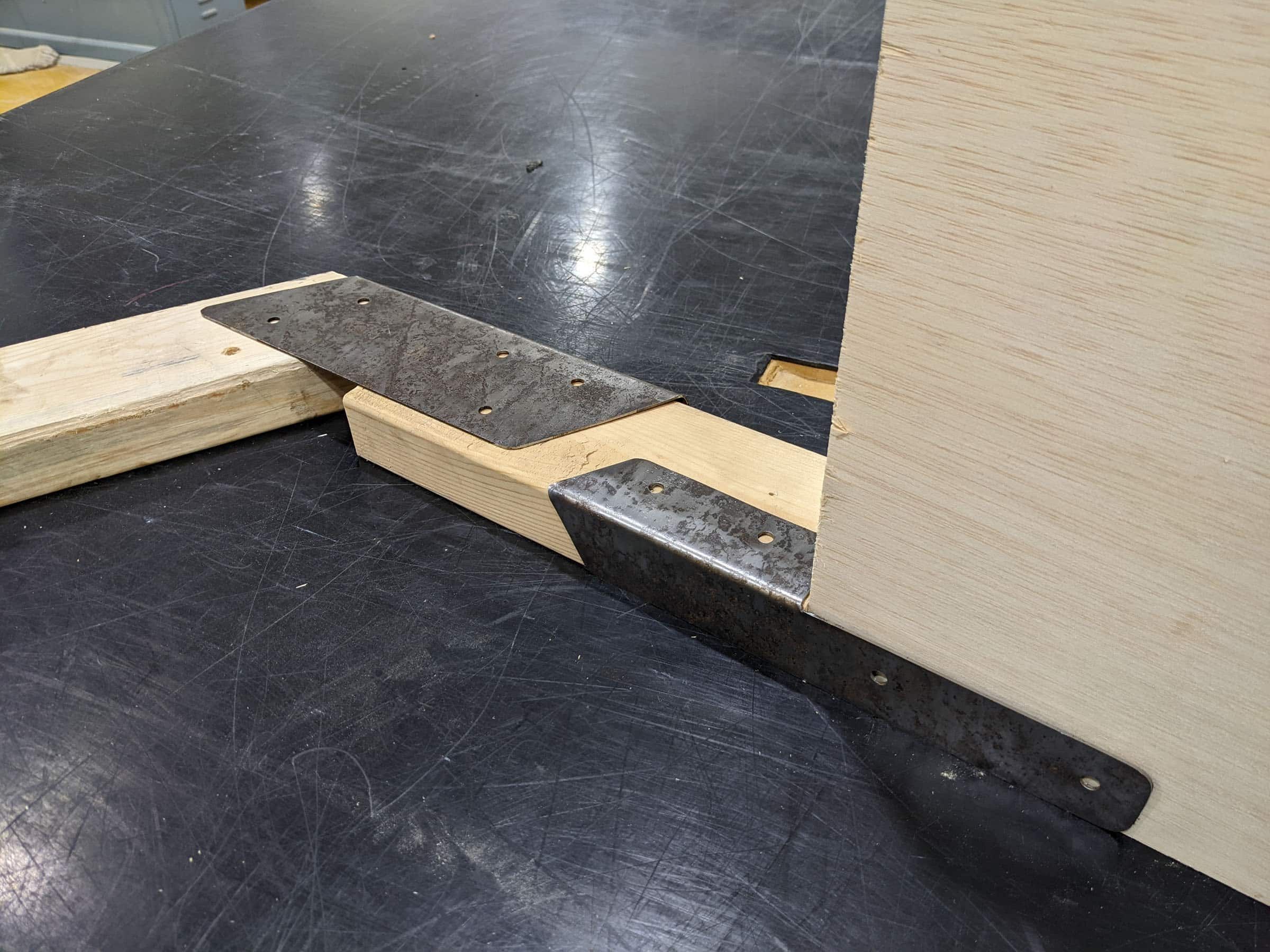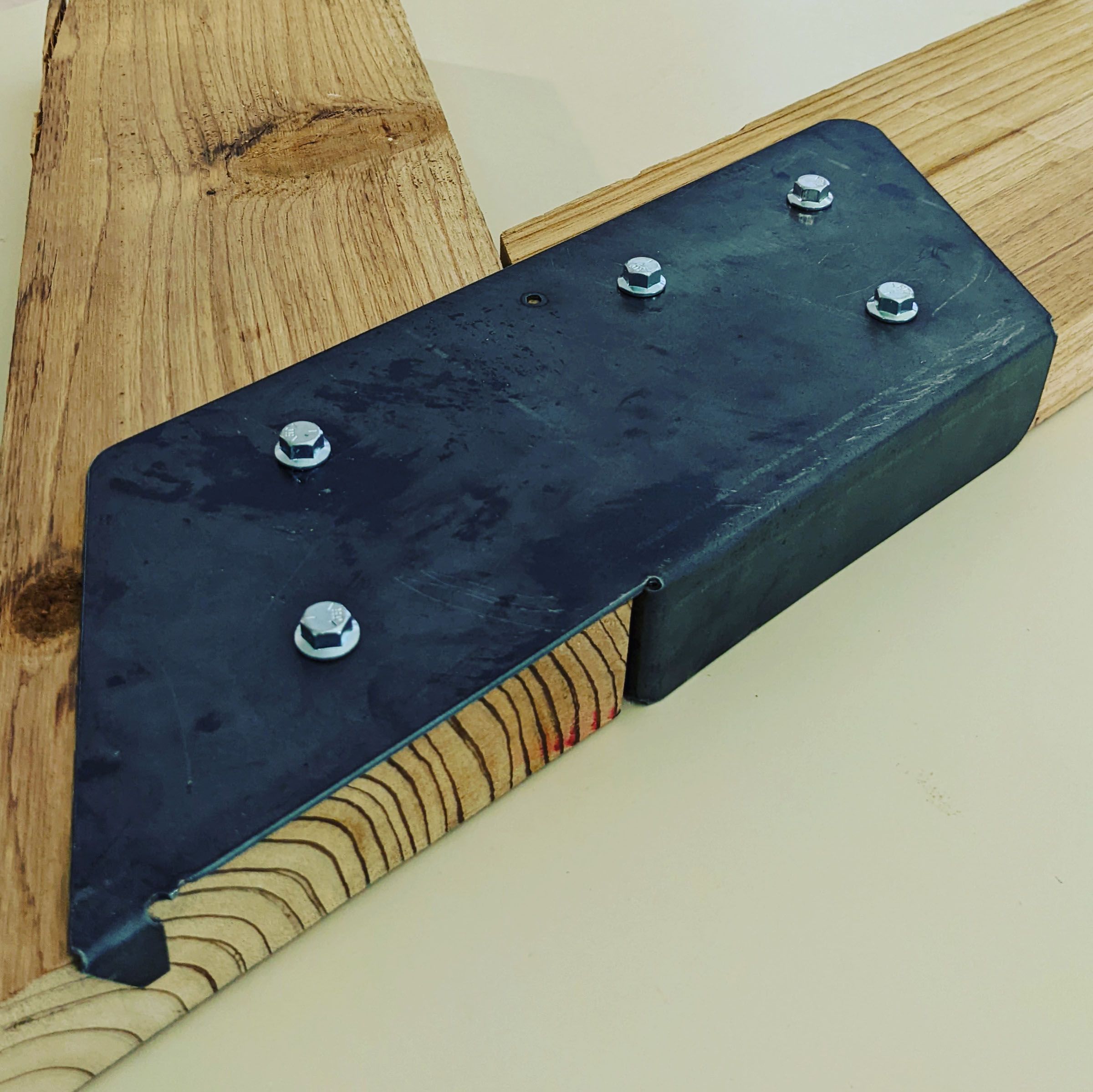 The joinery system rethinks traditional connections between timber members, externalizing the fastening process rather than concealing it. Unlike mortise and tenon or dowel joints, the steel brackets openly articulate the act of assembly, transforming fasteners and folded plates into a visible design language. The result is both structural and aesthetic: a disciplined rhythm of hex bolts, folded geometries, and steel-to-wood interfaces that underscores the precision of fabrication.