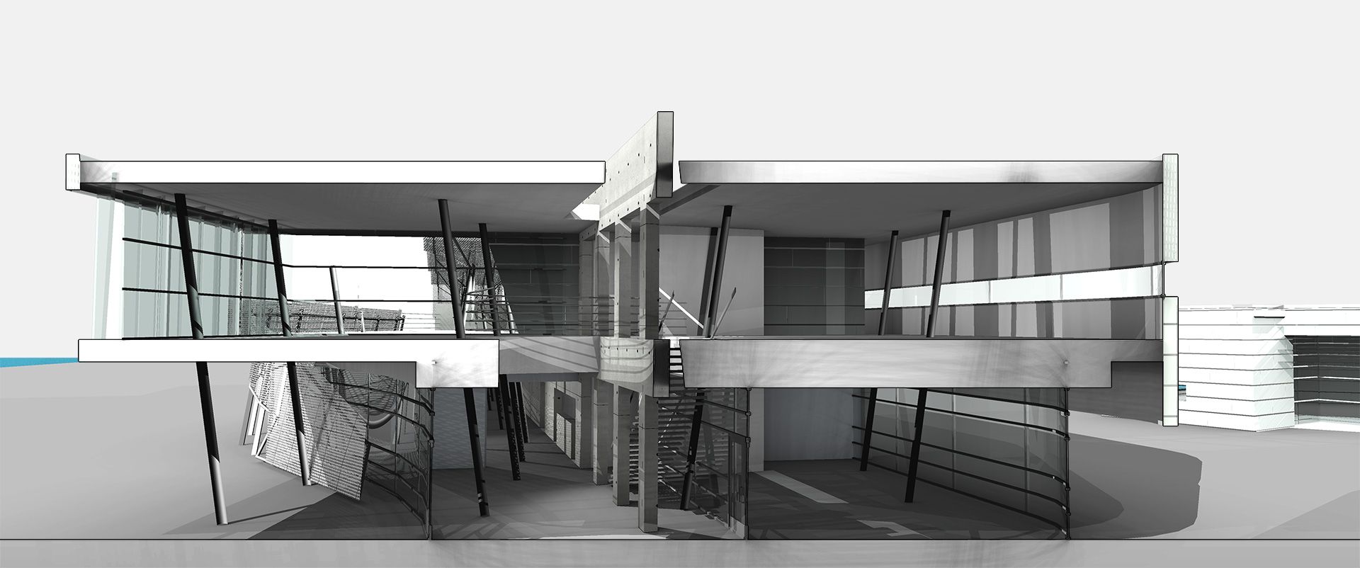 The envelope acts as both a membrane and a filter—glass and perforated surfaces alternate to create moments of openness and opacity, transparency and privacy. Roof canopies and exterior mesh systems are extended to create shaded exterior volumes, supporting educational programs, ecological exhibits, and informal gathering.
